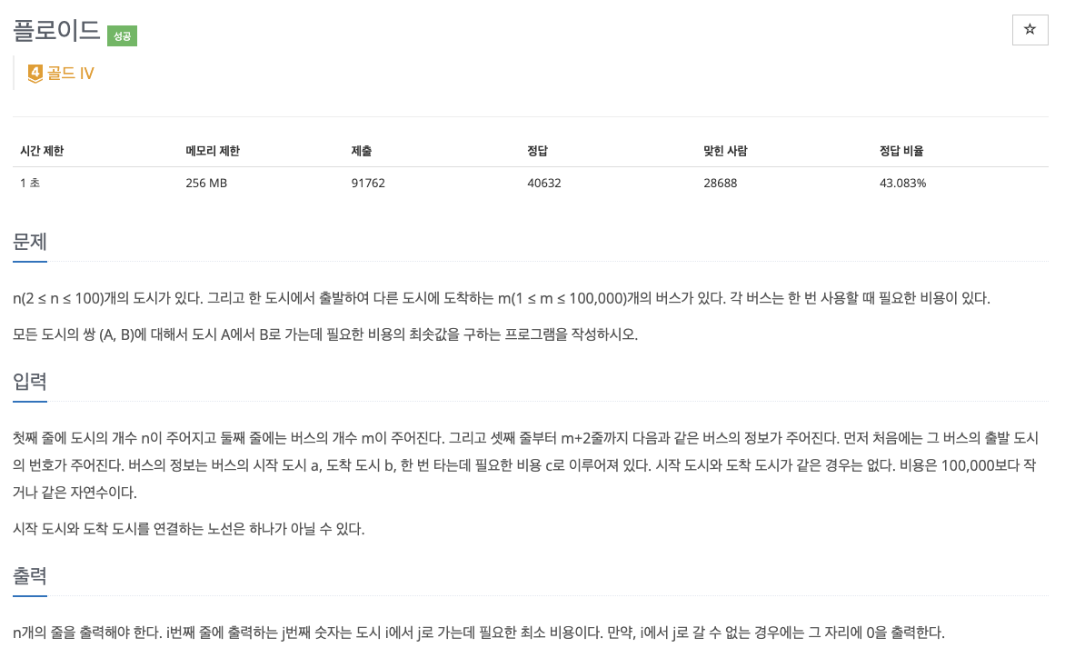 // 문제에서 "시작 도시와 도착 도시를 연결하는 노선은 하나가 아닐 수 있다."