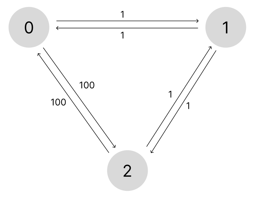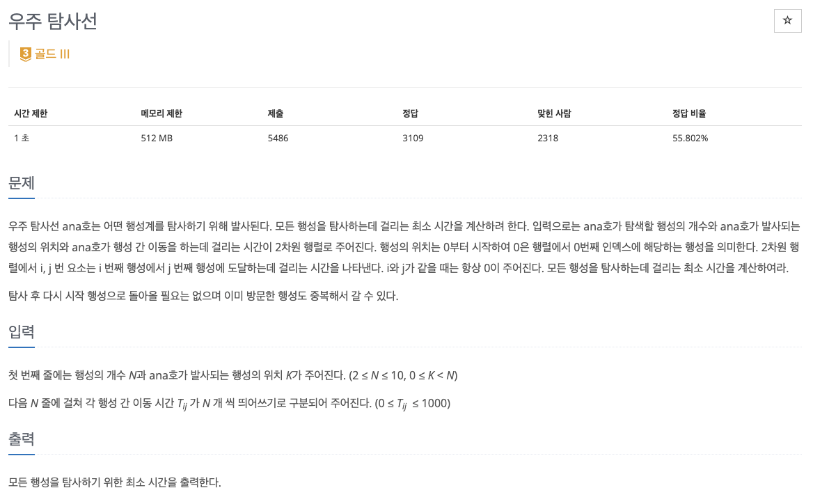 이 문제는 입력으로 행성의 위치가 변하기 때문에 플로이드 워셜 알고리즘으로 모든 시작노드에서 모든 목적지 노드까지의 최단 거리를 구해준다.