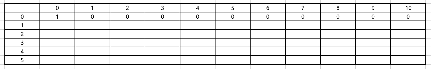 그렇다면 dp의 초기 상태는 아래와 같다.